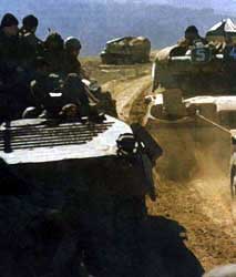 За сутки в Чечне подорвались две автоколонны. В обоих случаях боевики заложили на их пути радиоуправляемые фугасы. Когда караван из 16 грузовиков с продуктами в сопровождении бронетранспортеров выехал на улицу Ленина райцентра Ведено, в хвосте колонны прогремел взрыв. Основной удар пришелся по последнему БТР, экипаж которого ехал сверху на броне. Фугас был прикреплен с внутренней стороны забора на высоте около полутора метров, так что из пострадавших при взрыве пятерых солдат выжили только трое. Как уточняет нижегородское агентство "Инфонет" со ссылкой на пресс-службу Приволжского округа ВВ МВД, взрыв произошел в черте примыкающего к райцентру населенного пункта Дышне-Ведено. Погибли майор Дашков и рядовой Надеин. Прапорщик Кулаков, рядовой Еремин и рядовой Гонтюков выжили, но состояние их крайне тяжелое.