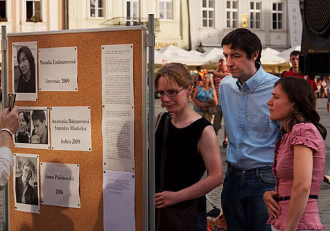 Чтобы почтить память Натальи Эстемировой в центре Праги собрались около сотни человек. В ходе митинга прозвучали личные воспоминания Андрее Бабицкого о погибшей правозащитнице, песни Владимира Высоцкого и отрывки из текстов Анны Политковской.
