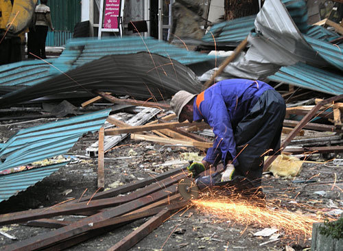 История с пожаром получила продолжение 2-го января, когда утром к четвёртому блоку Торговой галереи Сочи приехала строительная техника. Рабочие принялись разбирать не только сгоревшие конструкции, но и демонтировать не пострадавшие торговые павильоны. До приезда милиции, которую вызвали предприниматели, «под шумок» наёмные рабочие успели разобрать пятнадцать не пострадавших от огня павильонов.