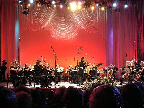 Выступает флейтист Массимо Мерчелли (Италия). Фото "Кавказского Узла"Музыкальный фестиваль уже в третий раз проходит в Сочи в феврале и Юрий Башмет традиционно выступает в нескольких амплуа: как солист, руководитель ансамбля "Солисты Москвы" и дирижер оркестра "Новая Россия", а также как художественный руководитель фестиваля. "На самом деле амбиции по поводу фестиваля у меня большие. Зимний фестиваль,  он своего рода предварительная деятельность, которая должна на пике привести к культурной программе самой Олимпиады-2014 года в Сочи", - сказал маэстро.