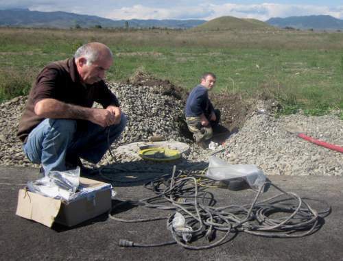 "Усиление и уширение полосы завершены. Сейчас ведутся работы по установлению свето-сигнального оборудования и другие технические работы", - уточнил Газарян.