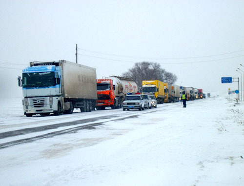 "Ограничения действуют на федеральной автодороге "Кавказ", на участке от Невинномысска до Минеральных Вод и на подъезде к Ставрополю, на дорогах Астрахань - Элиста - Ставрополь и Ставрополь - Александровское - Минеральные Воды, по автодороге Минеральные Воды - Кисловодск с 20-го по 29-й километр", - сказали в ГИБДД.