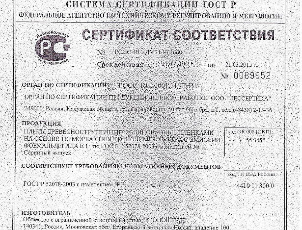 Фрагмент копии сертификата соответсвия на мебель, поставленную в школу селения Нижний Черек. Копия предоставлена индивидуальным предпринимателем Борисом Ивановым.Он передал корреспонденту «Кавказского узла» копию сертификата, а также протоколов лабораторных исследований. В экспертном заключении говорится, что плита древесно-стружечная, облицованная пленками на основе термореактивных полимеров, удовлетворяет «Единым санитарно-эпидемиологическим и гигиеническим требованиям к товарам, подлежащим санитарно-эпидемиологическому надзору в соответствии с обозначенной областью применения. Плиты могут быть использованы в строительстве зданий промышленного и гражданского назначения, в том числе в жилых, детских и лечебно-профилактических учреждениях. Документ подписан экспертом Макарук М.И., заведующим токсикологической лабораторией, кандидатом биологических наук.