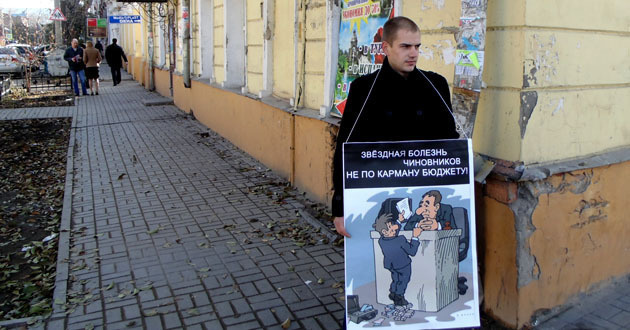 Серия одиночных пикетов сторонников прямых выборов мэра. Астрахань, 11 ноября 2014 г. Фоторепортаж корреспондента «Кавказского узла» Елены Гребенюк