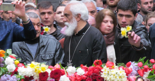 Жители и гости Армении второй день несут цветы к мемориалу Цицернакаберд