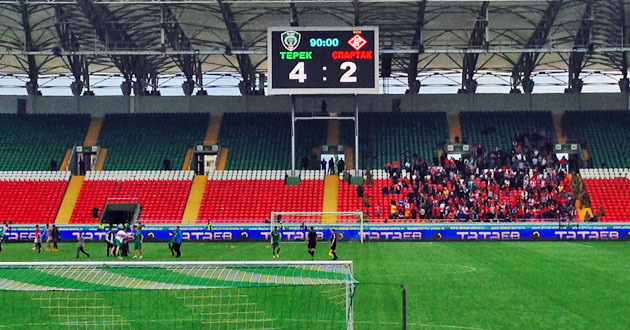 Футболисты "Терека" на домашнем стадионе в 27-м туре чемпионата России победили "Спартак" (Москва) - 4:2. С конца первого тайма грозненцы играли вдесятером.