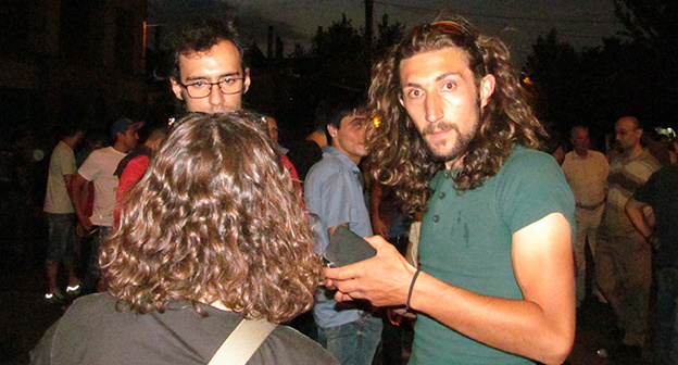Манифестанты расположились на газоне, прилегающем к улице Хоренаци. Некоторые из активистов легли спать на асфальте, расстелив заранее принесенные пледы или картонные коробки, передает корреспондент "Кавказского узла".