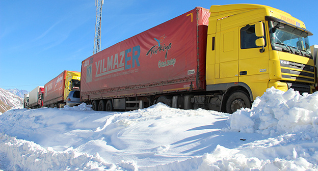 340 грузовых автомобилей скопились на КПП в Ларсе