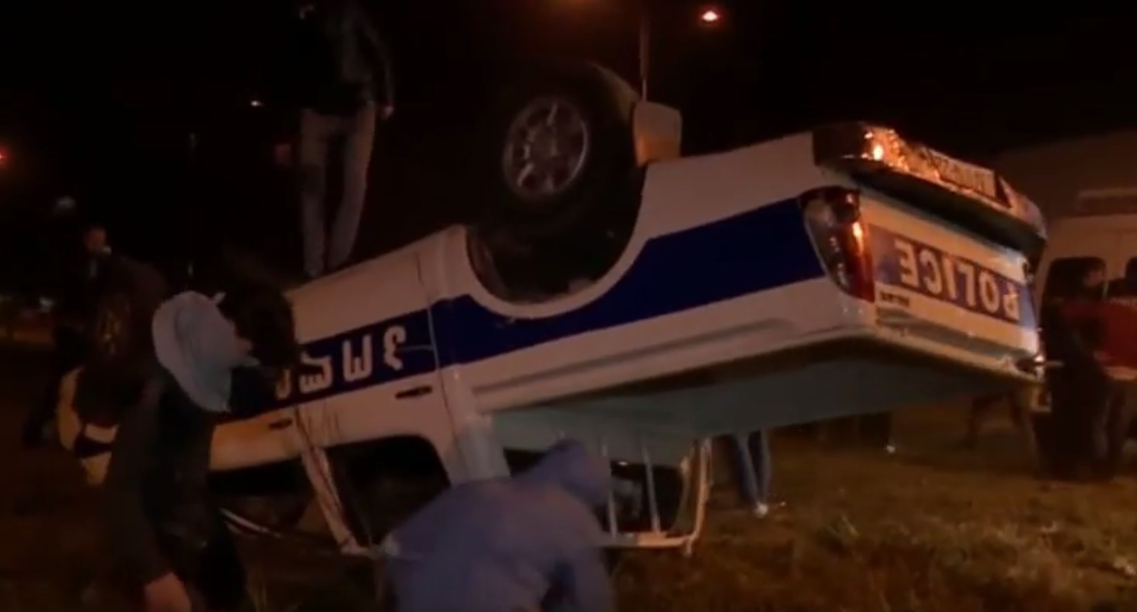 В ходе акции протеста участники беспорядков, в том числе, переворачивали и полицейские машины. Об этом свидетельствуют видеозаписи, размещенные на сервисе YouTube. В частности, судя по одной из видеозаписей, протестующие перевернули на улице Чавчавадзе в Батуми полицейский пикап. Затем протестующие взобрались на машину и начали прыгать на ней. Полицейских в этот момент в машине не было.