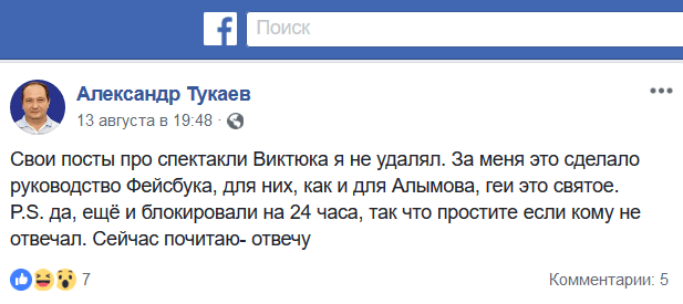 Впоследствии его посты вместе с провокационными и оскорбительными комментариями были удалены. Чиновник утверждает, что он сам свои записи не удалял. Вместе с тем после оскорблений журналистов в социальной сети Тукаев был уволен из регионального исполкома "Единой России" с формулировкой "по собственному желанию", хотя остался членом партии, сообщило 17 августа астраханское издание "Арбуз Today".