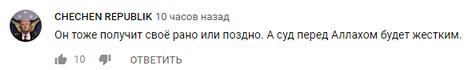 "Он тоже получит своё рано или поздно. А суд перед Аллахом будет жестким", - отмечает там же CHECHEN REPUBLIK.