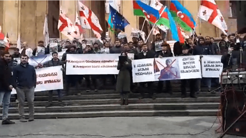 Акция протеста азербайджанцев, которые выступают против установки в Ахалкалаки памятника армянскому участнику войны в Нагорном Карабахе Михаилу Авагяну, прошла 8 февраля в Тбилиси перед зданием парламента Грузии.