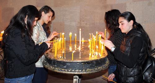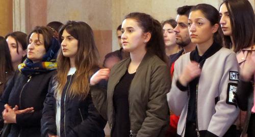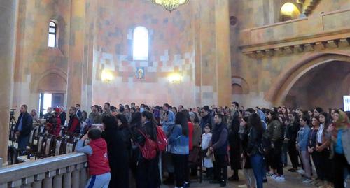 Вечером 10 апреля более 500 человек, студенты и представители молодежных организаций пришли на поминальную службу в кафедральный собор Покрова Пресвятой Богоматери в Степанакерте, передает корреспондент "Кавказского узла".