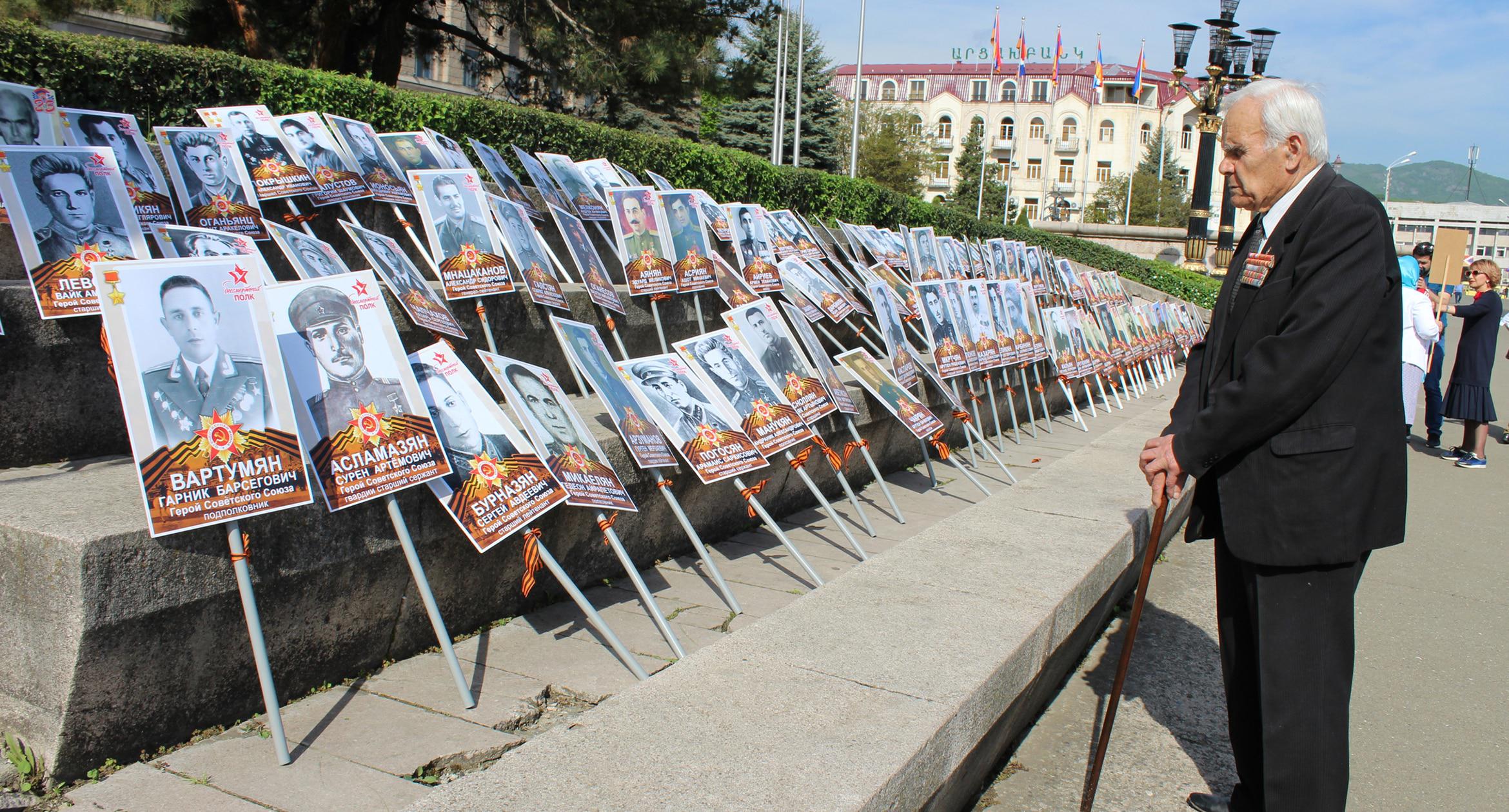 Председатель Союза ветеранов Великой Отечественной войны и труда Сергей Барсегян сообщил корреспонденту "Кавказского узла", что в Великой Отечественной войне участвовали 45 тысяч жителей Нагорного Карабаха, вернулись порядка 23 тысяч из них. Барсегян одобрил проведение акции "Бессмертный полк".