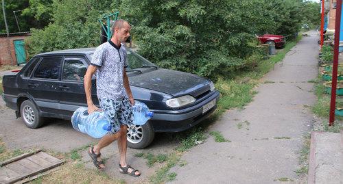 "Вчера привозили воду, я немного смогла набрать, но она очень воняет, и когда я ее перелила в тазик, на дне образовался налёт. Я даже стирать в этой воде боюсь, не хочу, чтобы поломалась стиральная машинка, новую купить для меня будет проблема", - рассказала она корреспонденту "Кавказского узла".