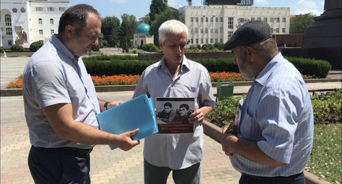 Как писал "Кавказский узел", Муртазали Гасангусейнов сегодня утром вышел на одиночный пикет в Махачкале. Он добивается от властей разрешения на проведение митинга численностью в пять тысяч человек с требованием эффективного расследования гибели его сыновей. По словам мужчины, Минюст неоднократно отказывал в акции протеста в центре города, ссылаясь на занятость территории. Муртазали Гасангусейнов начал пикет на центральной площади Махачкалы, а через некоторое время перешел к зданию мэрии.