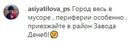 "Город весь в мусоре, периферия особенно, приезжайте в район Завода Денеб!" - написал asiyatilova_ps.