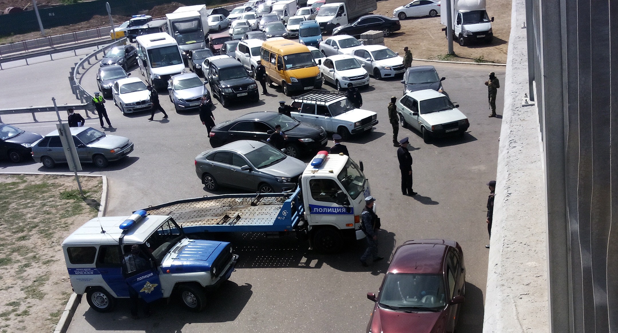 Пробка возникла и на въезде в Махачкалу, где открыта лишь одна полоса. Силовики проверяют документы. По словам одного из сотрудников полиции, въезд разрешен только с махачкалинской пропиской. Медработников пропускают без ограничений.