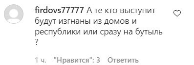 "А те кто, выступит, будут изгнаны из домов и республики или сразу на бутыль?" - поинтересовался пользователь firdovs77777.