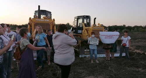 Около 50 жителей Волгоградской области собрались 7 июля на месте строительства дороги в Волго-Ахтубинской пойме и потребовали от прокуратуры и полиции провести проверку в связи с запланированной вырубкой дубов.