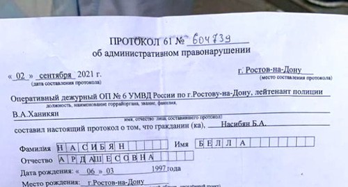 На 13.00 мск 2 сентября на сайте МВД по Ростовской области нет информации относительно выписанного штрафа Белле Насибян или об ее задержании.