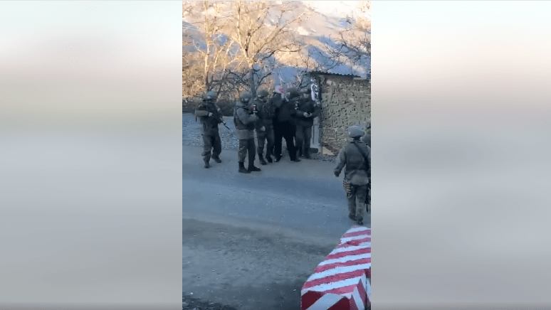 Офис омбудсмена Нагорного Карабаха сообщил, что вечером 13 ноября российские миротворцы передали армянской стороне задержанного - жителя Степанакерта Норайра Мирзояна. "Гражданин Республики Арцах (Нагорного Карабаха. - Прим. "Кавказского узла"), задержанный российскими миротворческими войсками, был передан правоохранительным органам Арцаха. Некоторое время назад я встретился с гражданином в Следственном комитете, ознакомился с обстоятельствами происшествия. Гражданин связался со своими родственниками. Действия по расследованию обстоятельств зафиксированного инцидента будут проводить правоохранительные органы Республики Арцах, обеспечивая все права и законные интересы гражданина", - перевел корреспондент "Кавказского узла" публикацию на странице омбудсмена Нагорного Карабаха Гегама Степаняна в Facebook.