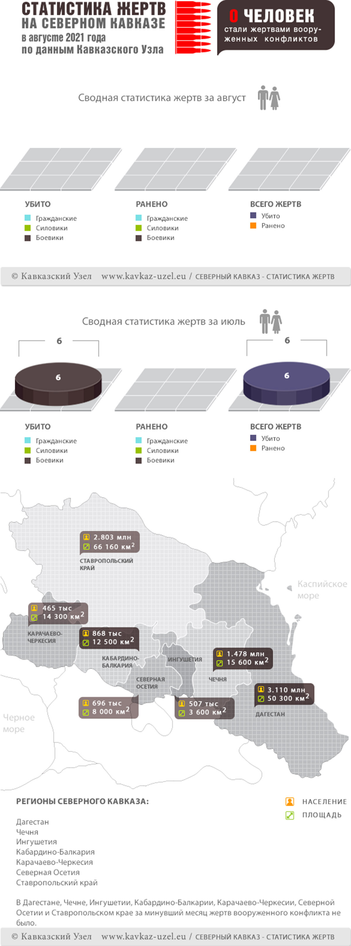 Инфографика. Статистика жертв на Северном Кавказе в августе 2021 года по данным Кавказского Узла
