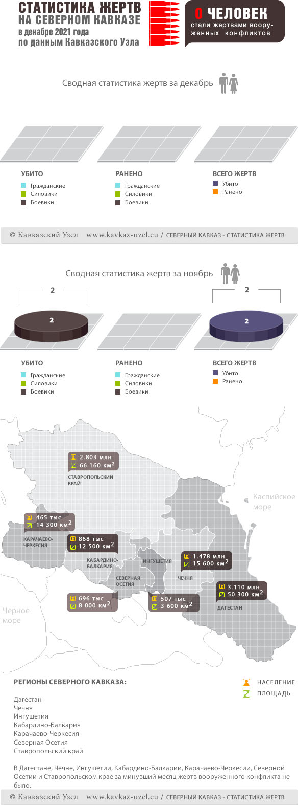 Инфографика. Статистика жертв на Северном Кавказе в декабре 2021 года по данным Кавказского Узла