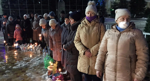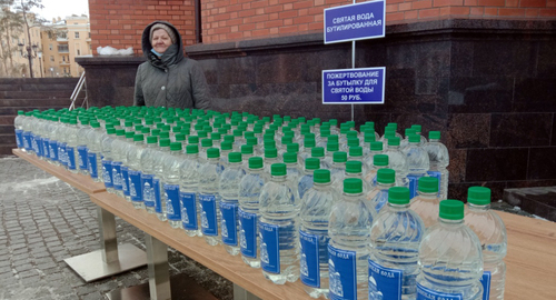 На Центральной площади Красного Сулина, по подсчетам корреспондента "Кавказского Узла", 18 января, в Крещенский Сочельник собрались 350-400 человек. Люди принесли с собой для освещения воду, зажгли свечи. Отец Александр зачитал молитву, после чего прошёл по кругу, освятив воду принесенную людьми.