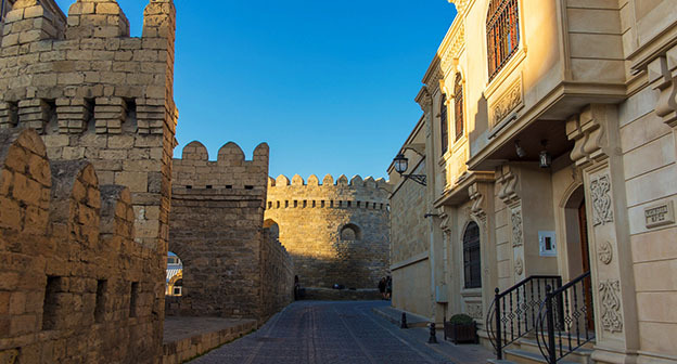 На крепостной стене в Государственном историко-архитектурном заповеднике "Ичеришехер" 13 июня была нарисована буква Z, символизирующая поддержку российской военной спецоперации на Украине.