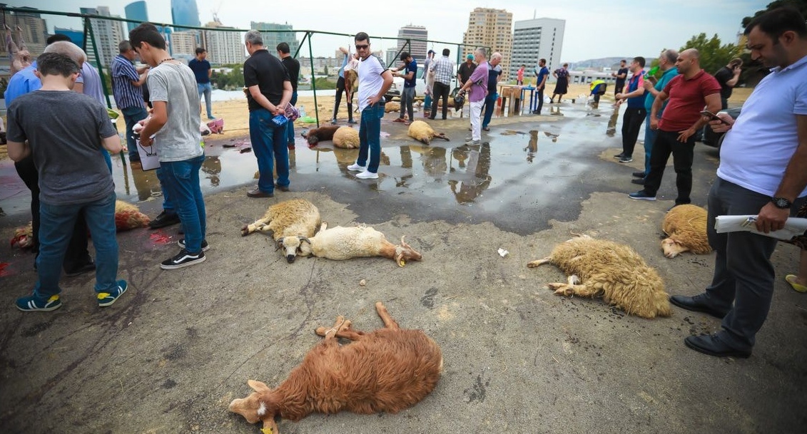 Забой жертвенных животных в дни Курбан-байрама проводится на некоторых улицах Баку в антисанитарных условиях и в присутствии детей, что противоречит требованиям богословов, пожаловались горожане. Зоозащитник Азер Гараев предложил заменить убийства жертвенного скота денежными пожертвованиями.