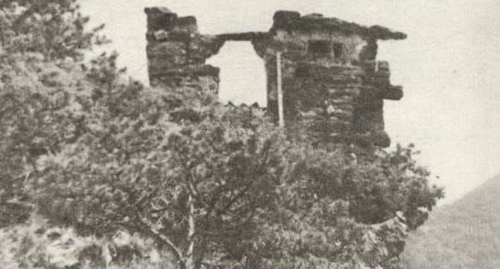 Башня Салги. Фото корреспондента "Кавказского узла".15 июля члены Совета тейпов Ингушетии совершили восхождение к самому отдаленному башенному комплексу республики - Маготе, а также к расположенному рядом с ним храму Мага-Ерды, чтобы лично зафиксировать разрушения исторических достопримечательностей и привлечь внимание ингушской общественности к этой проблеме.