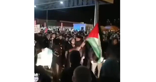 К публикации приложено в видео, на котором женщина с флагом Палестины в руках, стоя среди толпы, кричит: "Не бойтесь охраны", что вызывает одобрительные возгласы окружающих.