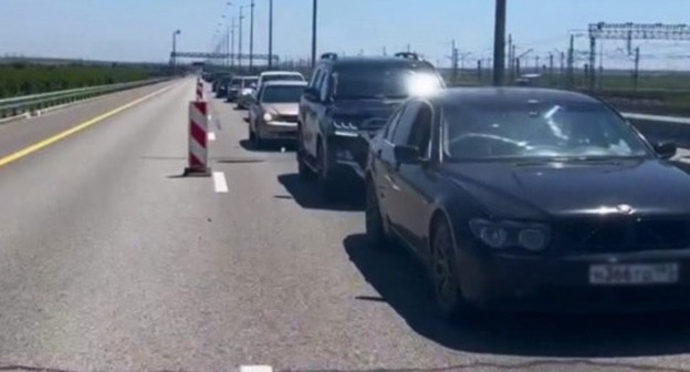 Водители и пассажиры 547 автомобилей ожидают в Краснодарском крае проезда в Крым. Ночью движение через Крымский мост временно перекрывалось.