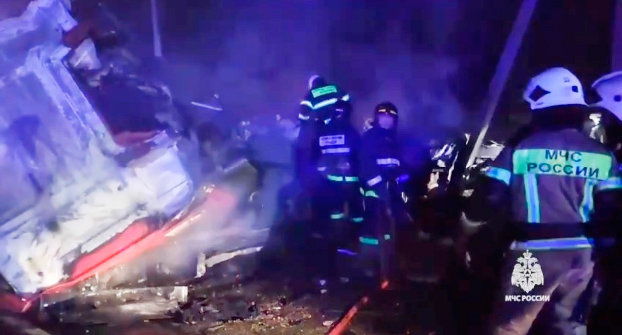По предварительной информации, водитель автобуса погиб, восемь его пассажиров получили травмы, в том числе три ребенка, сообщается в телеграм-канале ведомства.