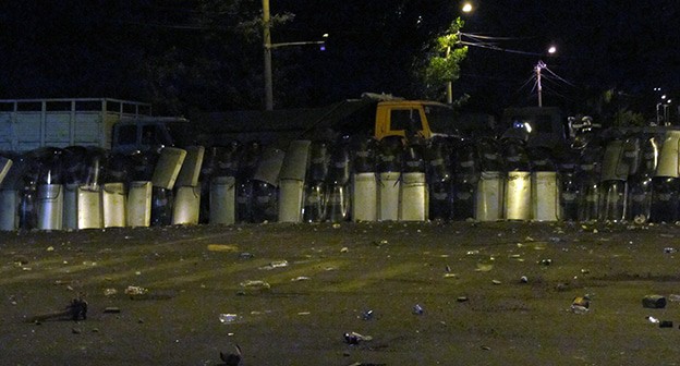 Активисты выдвинули ультиматум силовикам – разрешить обеспечить едой мятежников и заложников. После отказа силовиков выполнить требование активистов манифестанты попытались прорвать полицейский кордон. Манифестанты забросали полицию камнями, в ответ силовики применили слезоточивый газ и спецсредства. Фоторепортаж "Кавказского узла" с акции протеста в Сари Таг.