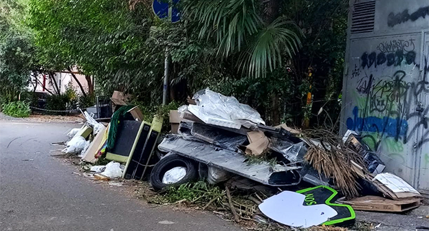 Жители Сочи пожаловались 24 августа корреспонденту "Кавказского узла" на мусорные завалы возле домов, которые не вывозятся неделями.