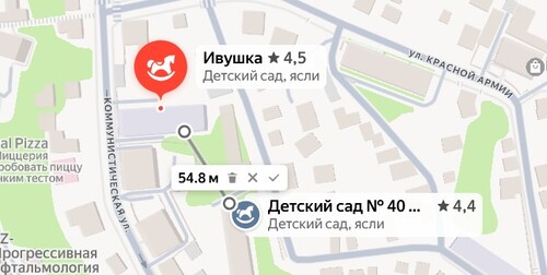 По данным сервиса "Яндекс Карты", детсады № 40 и 41 расположены менее чем в 100 метрах друг от друга.
