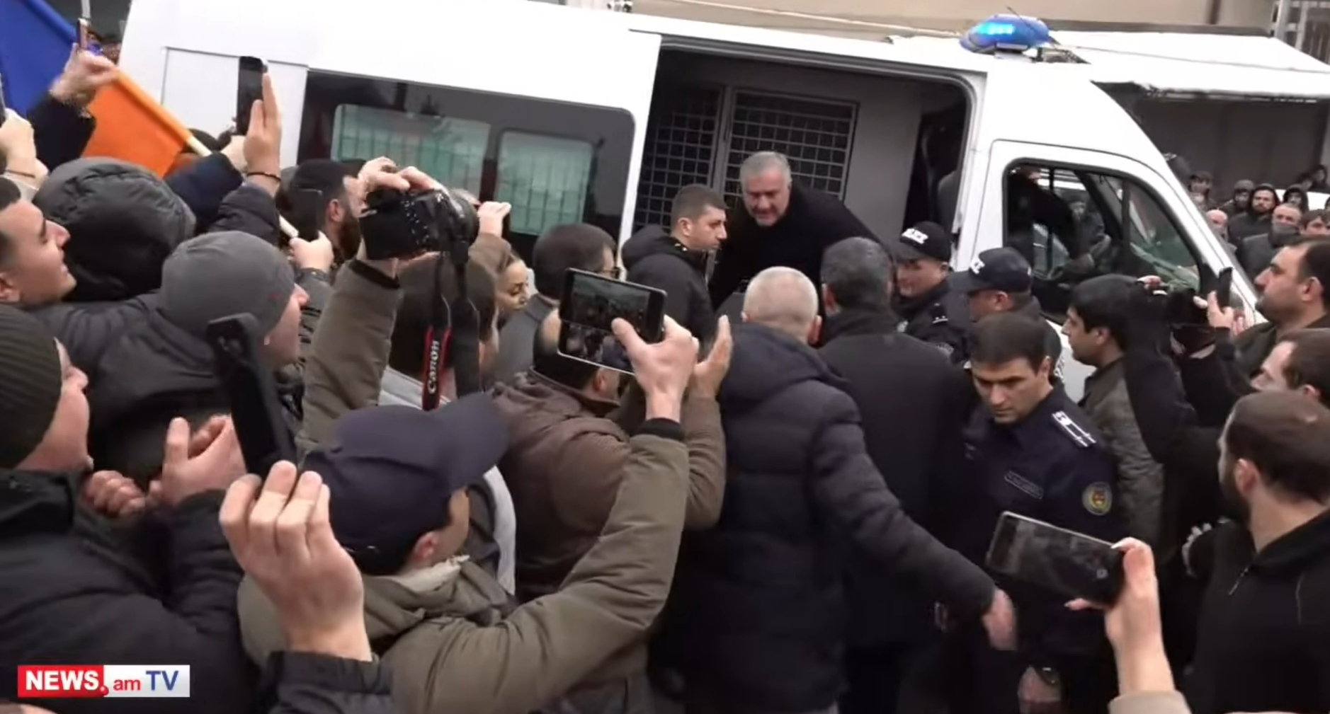 На кадрах видео, опубликованного изданием, видно, что прибывший автозак с Карапетяном окружила толпа людей. Еще до того, как автомобиль остановился, собравшиеся начали скандировать "Самвел!". Когда сотрудник силовой структуры начал открывать дверь отсека для задержанных, люди вокруг начали аплодировать. Их аплодисменты и приветственные крики заметно усилились, когда Самвел Карапетян вышел из автозака.