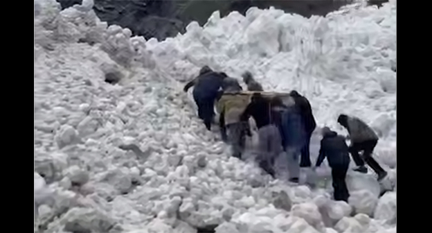 Жителям горного села пришлось нести на себе тело покойного для похорон в родном селе из-за невозможности проехать по дороге из-за схода лавин, следует из видео, которое разместил сегодня Mash Gor. На записи около 10 мужчин идут вверх по горному склону, засыпанному снегом, в руках у них предмет, похожий на гроб. Дорога, от которой они поднимаются вверх, расчищена.