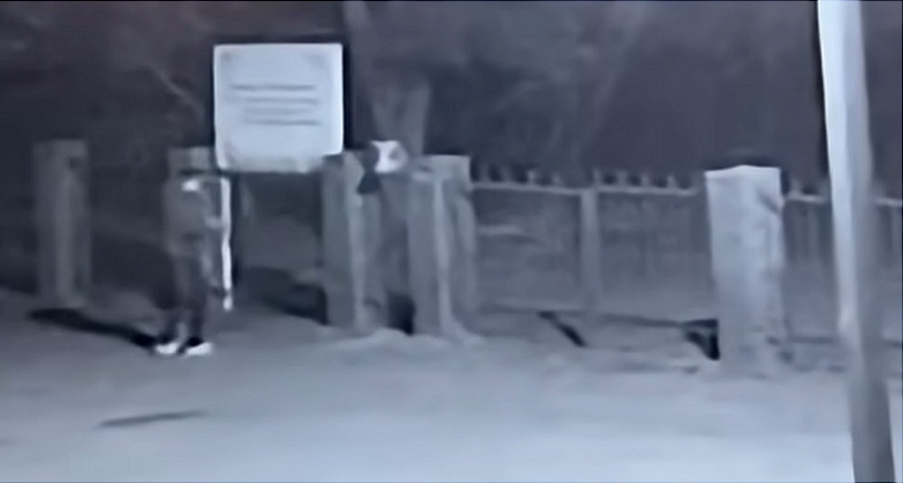 Согласно видеозаписи, сделанной камерой наблюдения, в темное время суток мужчина подошел к забору и надел на один из прутьев ограды свиную голову. Потом мужчина отошел на несколько шагов, держа руки на уровне лица (вероятно, снимая фото или видео на телефон), а затем покинул территорию.