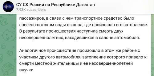 Еще два человека, девушка и ребенок, были спасены из реки, но умерли в больнице, о них ведомство сообщило ранее в тот же день в другой публикации.