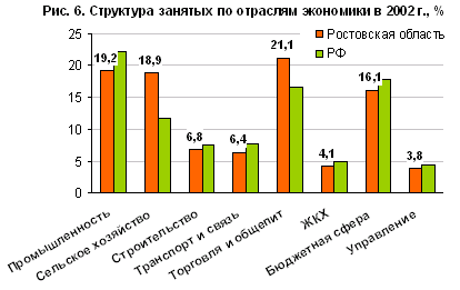 Рис. 6. Структура занятых по отраслям экономики в 2002 г.