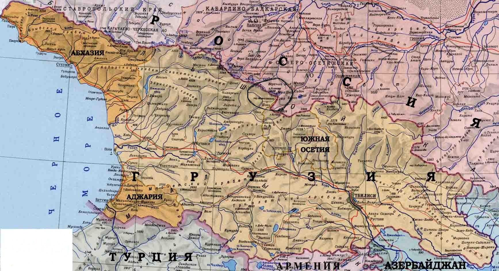 "у Мамисонского перевала, примерно в 20 километрах от российско-грузинской границы, 10 июня был взорвал т.н. Николаевский мост. В подрыве моста население села Глола обвиняет пограничные войска Грузии. Село находится в 25 километрах от границы и граничит с курортом Шови.