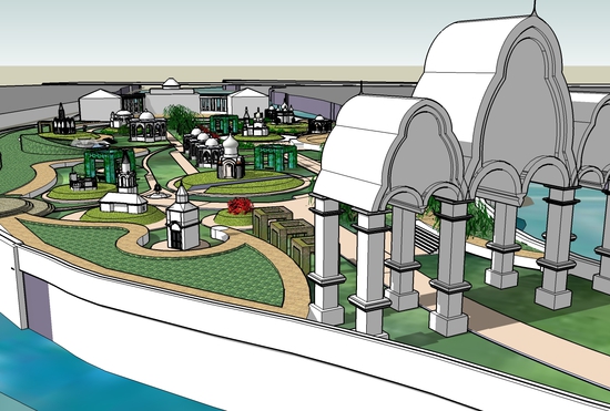 Памятники архитектуры - «Триумфальная арка», «Царская беседка» и «Восточный павильон»  предлагается восстановить в масштабе 1:1 и использовать функционально.
