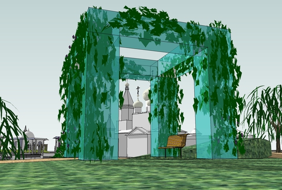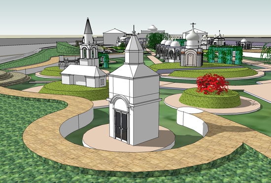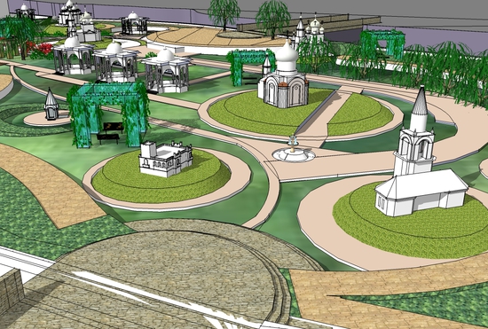 Авторы проекта ставят цель если не восстановить утерянные памятники зодчества, то хотя бы возродить их образы, внешний облик на небольшом пространстве острова.