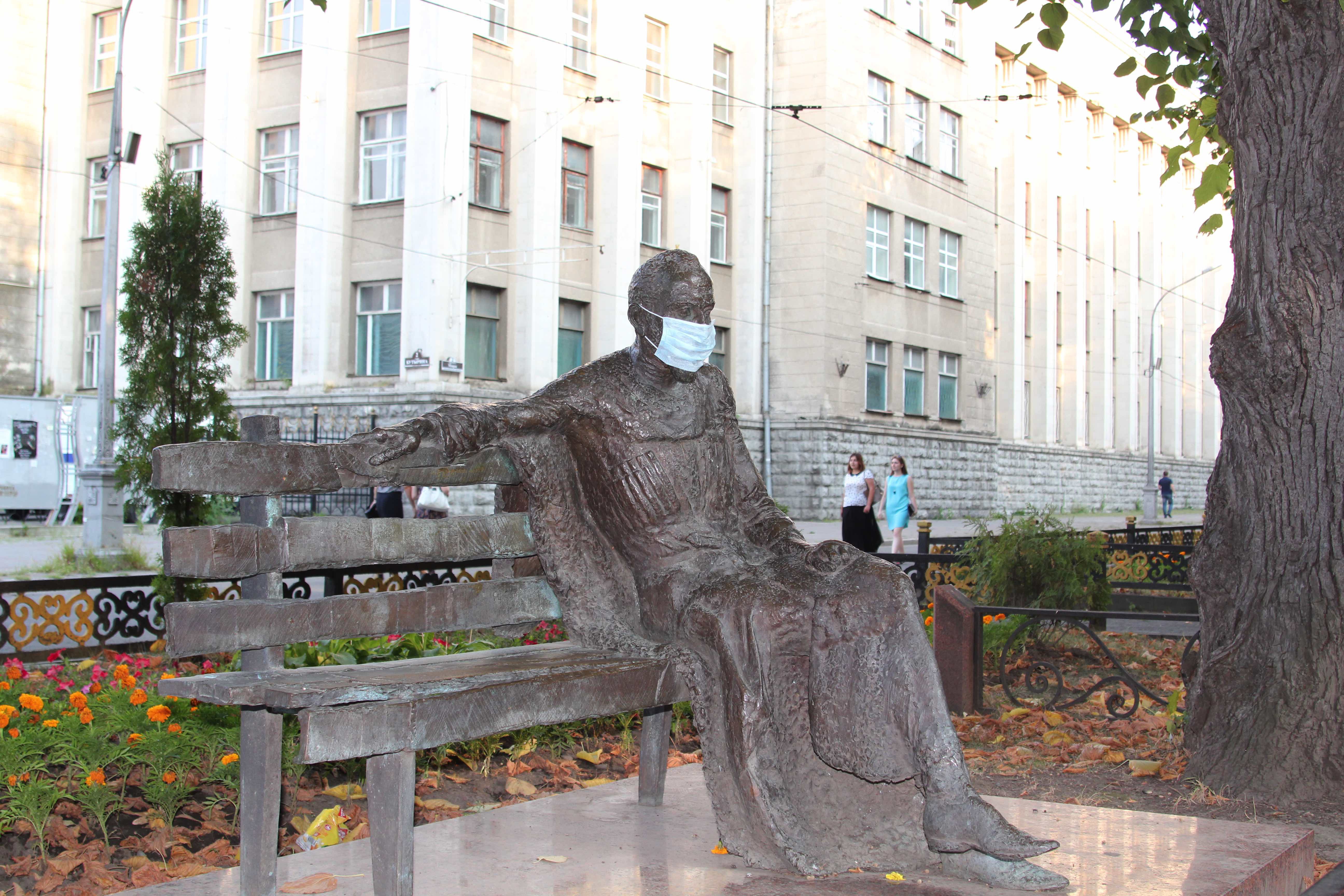 хотя, конечно, немного отвлекаясь от темы, то, каким его изобразил скульптор Владимир Соскиев, делает респираторную маску весьма гармоничным дополнением к образу поэта: