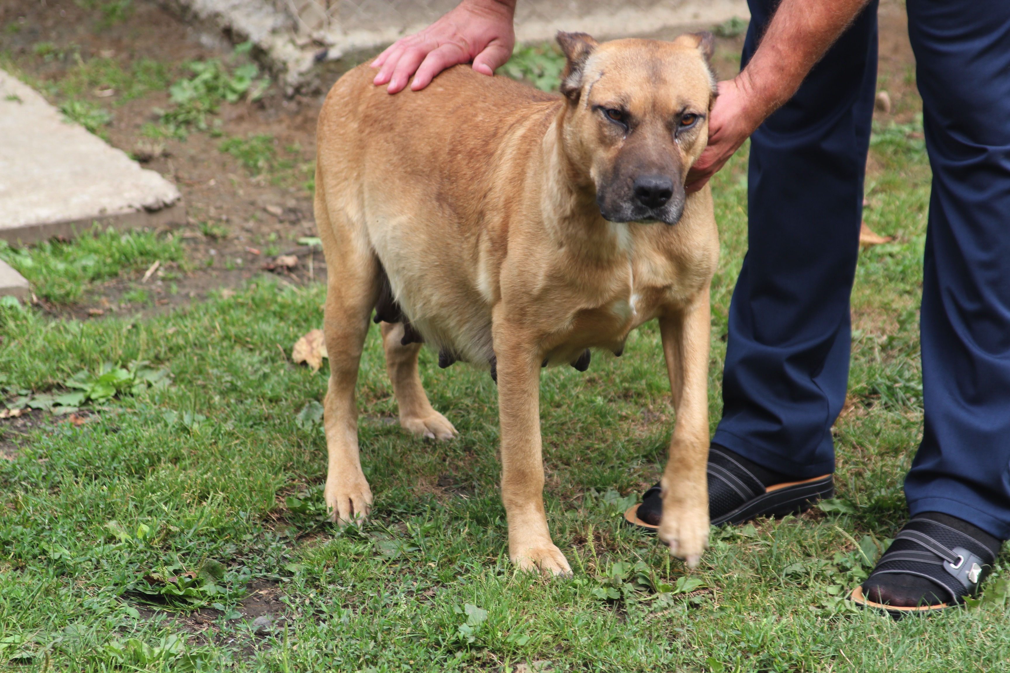 Кудзиев Сослан разводит догов во дворе своего дома в селе Октябрьское. так выглядит взрослая самка (в положении), посмотрите на ее грозный взгляд: