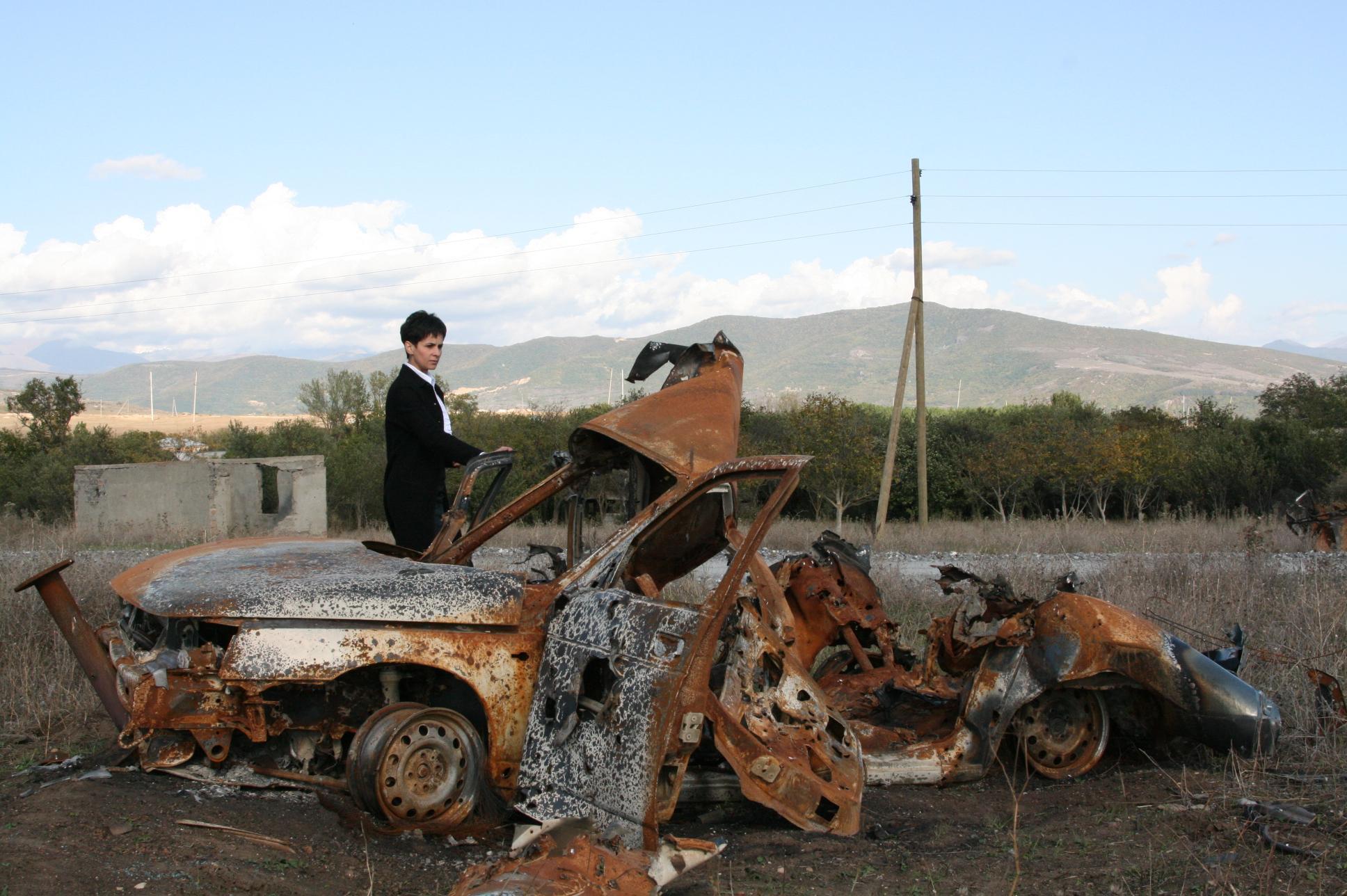 главврач цхинвальской санэпидемстанции Марина Кочиева возле машины, на которой пыталась бежать из Цхинвала