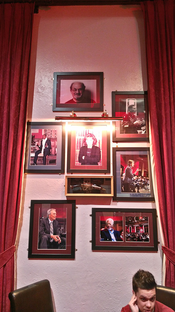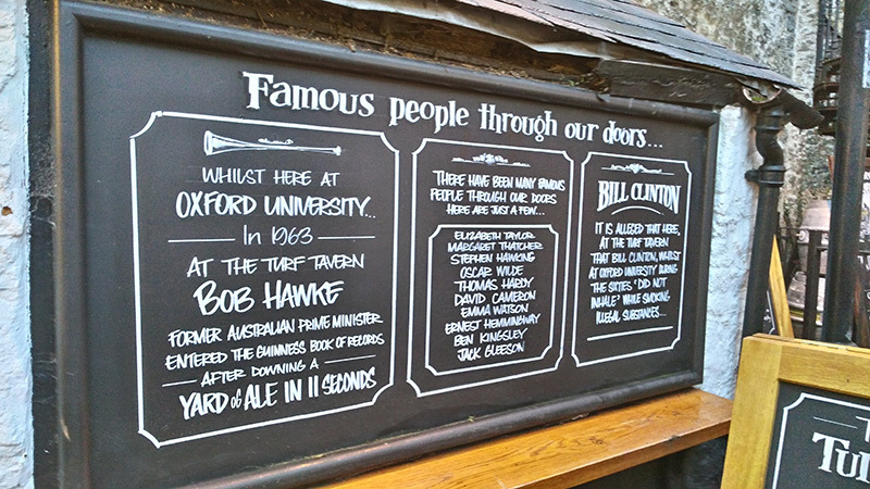 на "доске почета" паба Элизабет Тэйлор, Стивен Хоукинг, Маргарет Тэтчер, Том Харди, Оскра Уайльд, Дэвид Кэмерон, Эмма Уотсон, Эрнест Хэмингуэй, Бэн Кингсли, Джэк Глиссон... особо выделен Билл Клинтон и его известная история. переведу: